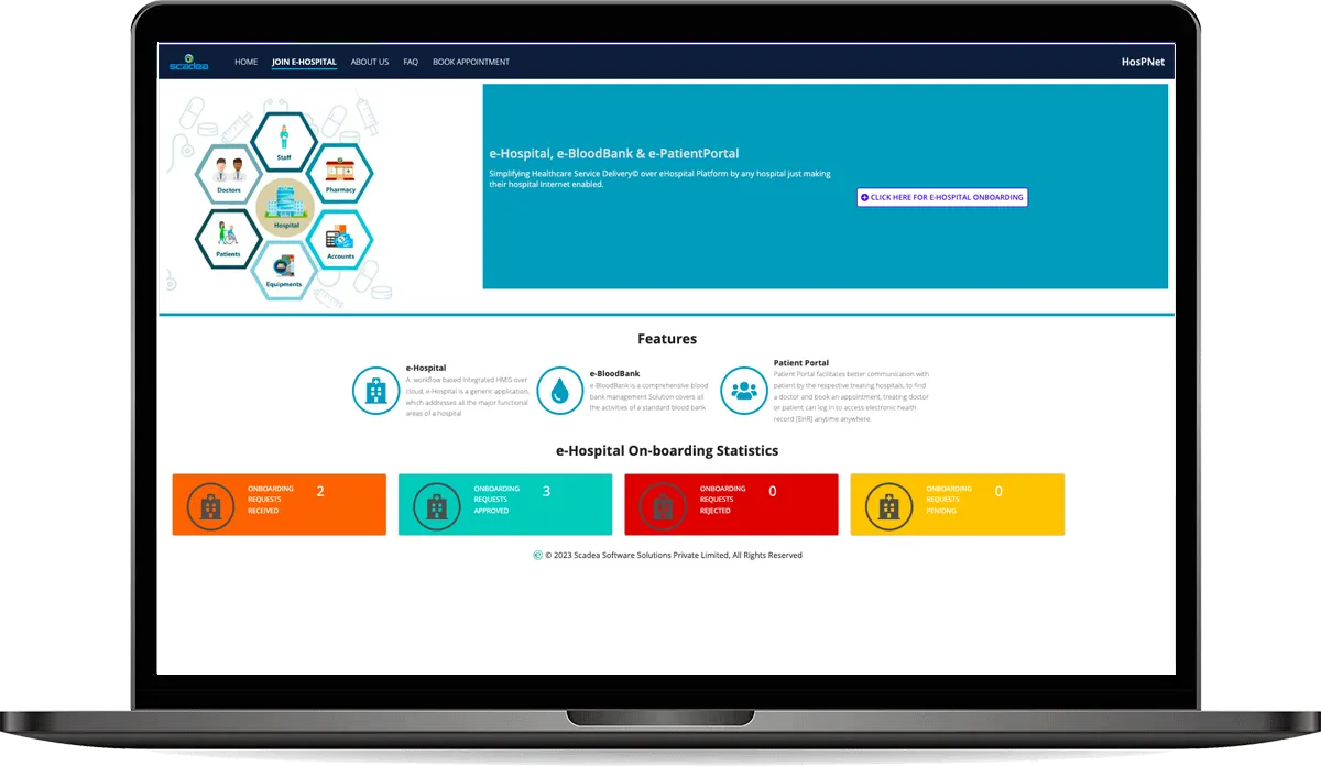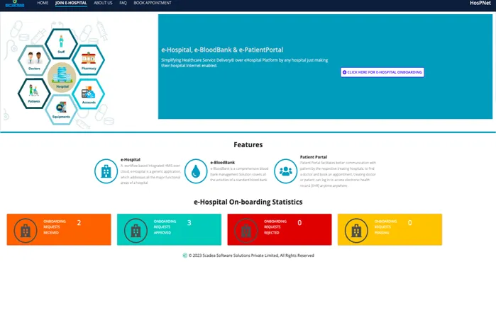 e-Hospital is an open-source health information management system ( HMIS) that is configurable and easily customizable with multi-tenancy support. It is designed to deploy in cloud infrastructure to manage multiple hospitals seamlessly