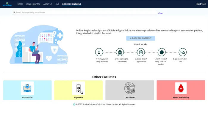 ORS is Online Registration Framework Portal for taking OPD appointments in the Government Hospitals